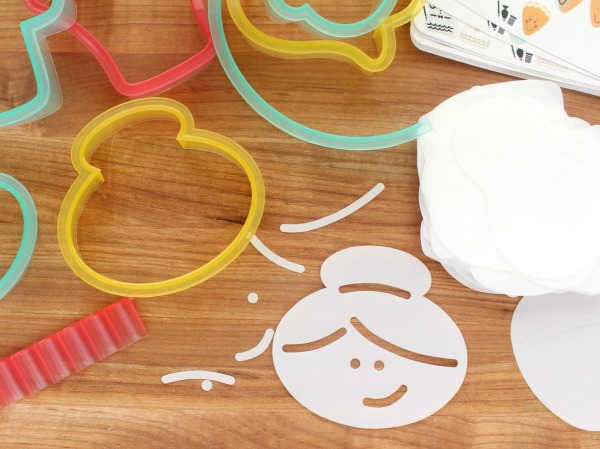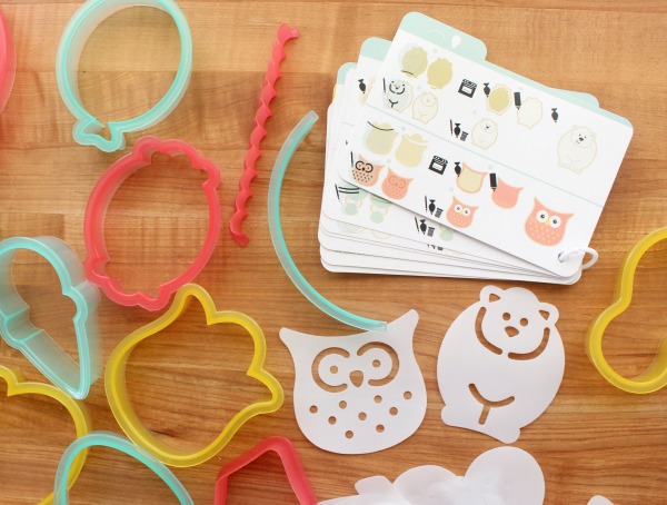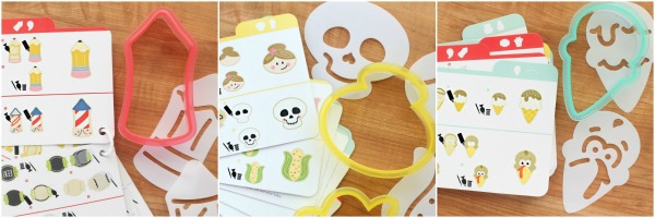 Além de cortadores, esses kits incluim modelos de decoração de plástico e cartões de receitas e instruções.