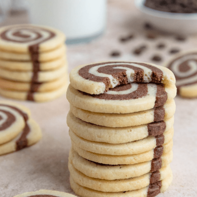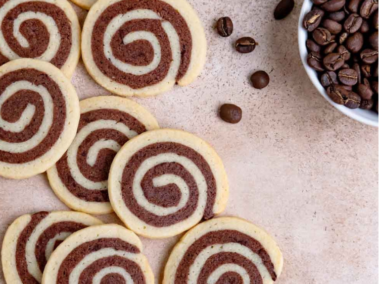 Esse biscoito que hipnotiza com sua aparência e traz o desejo de querer mais um. Pura fantasia em formato de sabor. Estes biscoitos amanteigados e macios para qualquer ocasião combinam duas massas complementares: uma de baunilha e outra de chocolate com café expresso. Cada massa é uma base , pratica de fazer. Estes Biscoitos são assados usando o método clássico de fatiar e assar, que funciona perfeitamente em todas as ocasiões. Embora a etapa do padrão do espiral possa ser um pouco complicada no início, o passo a passos fácil que ensino aqui ajudarão você a alcançar o sucesso com o espiral perfeitamente.