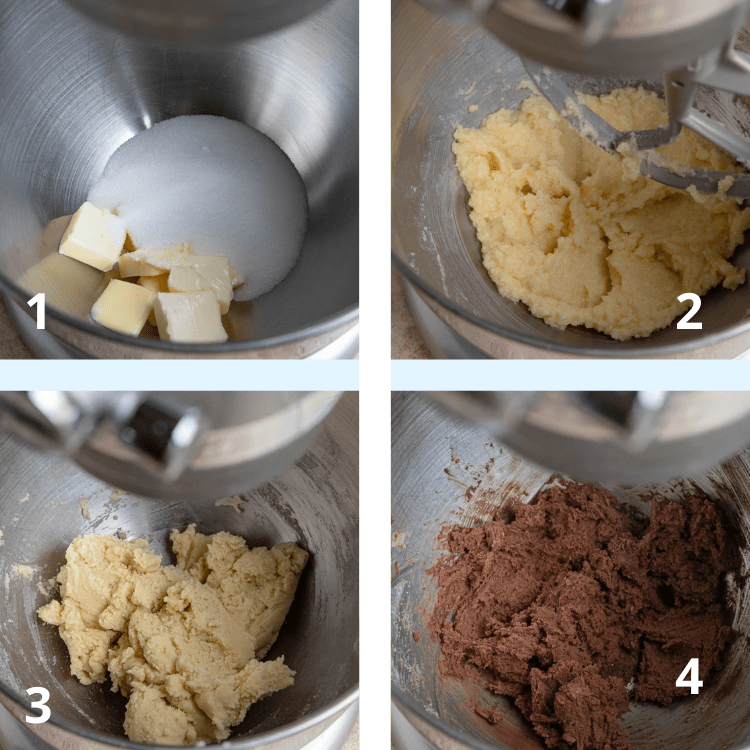 - Coloque a manteiga e o açúcar na tigela da batedeira. Bata em velocidade média-baixa até que os ingredientes estejam combinados. Continue batendo até que a manteiga e o açúcar fiquem cremosos, cerca de 1 minuto. Raspe o fundo da tigela. Adicione o ovo e o extrato de baunilha e bata em velocidade média até que o ovo esteja totalmente incorporado.