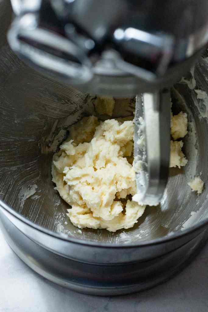 • Coloque a manteiga, o açúcar, o extrato de baunilha e o sal na tigela de uma batedeira planetária com o batedor em formato de pá e bata em velocidade média até obter uma mistura lisa e cremosa, por cerca de 2 minutos. Desligue a batedeira e raspe a tigela e o batedor em formato de pá.