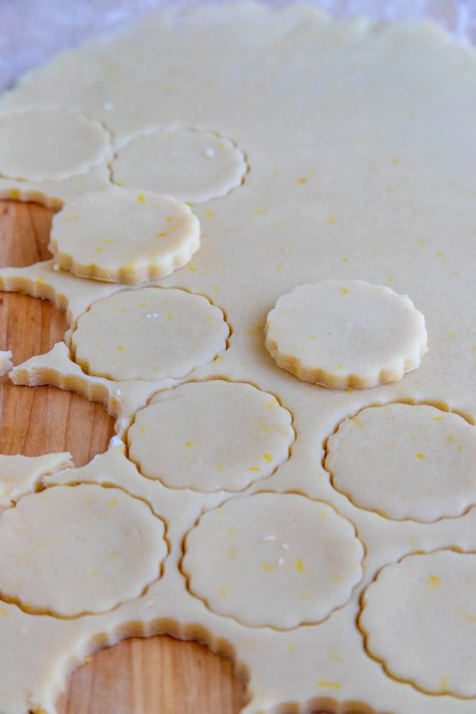 - Açúcar granulado . Algumas receitas usam açúcar de confeiteiro, mas eu prefiro o açúcar granulado (cristal ou demerara). Ele deixa o biscoito levemente crocante e ajuda a dourar levemente a borda inferior. Comece a receita esfregando as raspas de limão no açúcar para criar um açúcar de limão aromático.